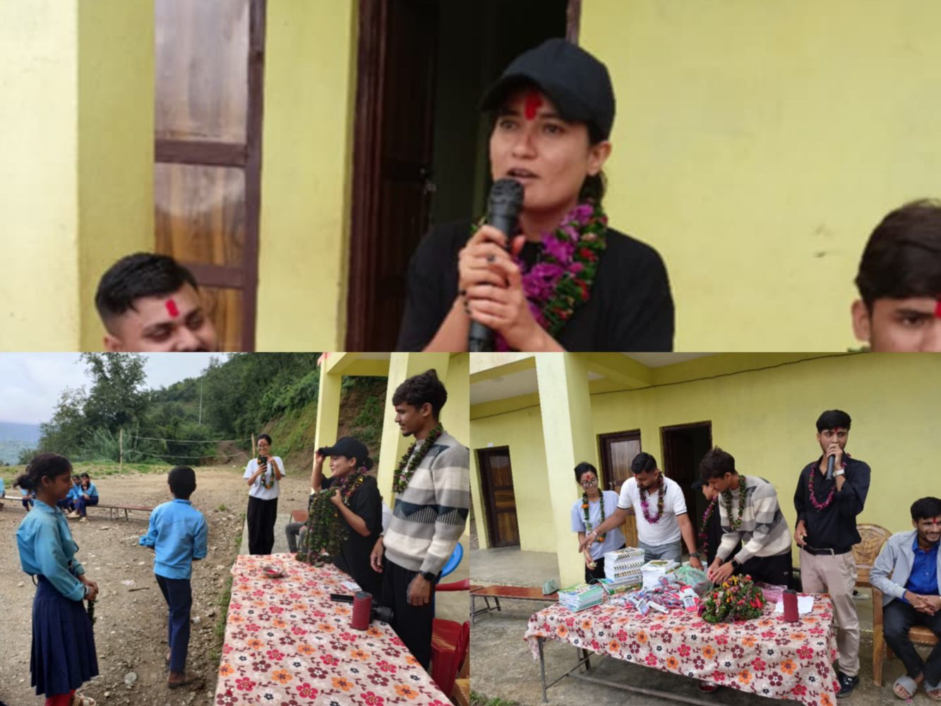 शैक्षिक सामाग्री सौजन्य रञ्जनाले आफुले नजिकबाट क्लबको सिद्धान्त बुझेकाे र क्लबको समाजिक कार्य नजिक बाट नियालेपछि समाज प्रतिकाे उत्तरदायित्व अझै फराकिलो बन्दै जावस भन्दै आफुले सक्ने सहयोग सदैव गर्ने र दुर्गममा बालबालिकासँग नजिकबाट माया साट्ने अवसर दिएकाे भन्दै क्लब र विद्यालय परिवारलाई धन्यवाद दिएकि छन।