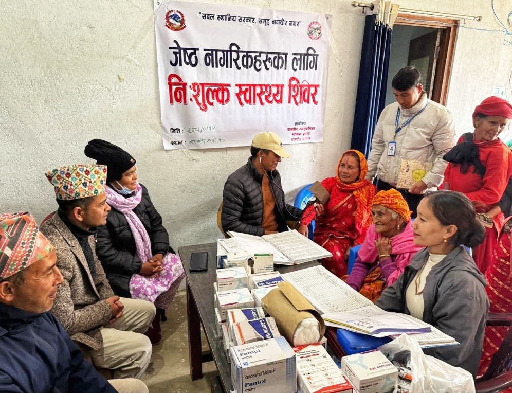 बागचौर नगरपालिकाले वडा नं. १० मा सामाजिक सुरक्षा भत्ता वितरणसँगै ज्येष्ठ नागरिकका लागि निःशुल्क स्वास्थ्य परीक्षण तथा औषधि वितरण कार्यक्रम सम्पन्न गरेको छ ।
