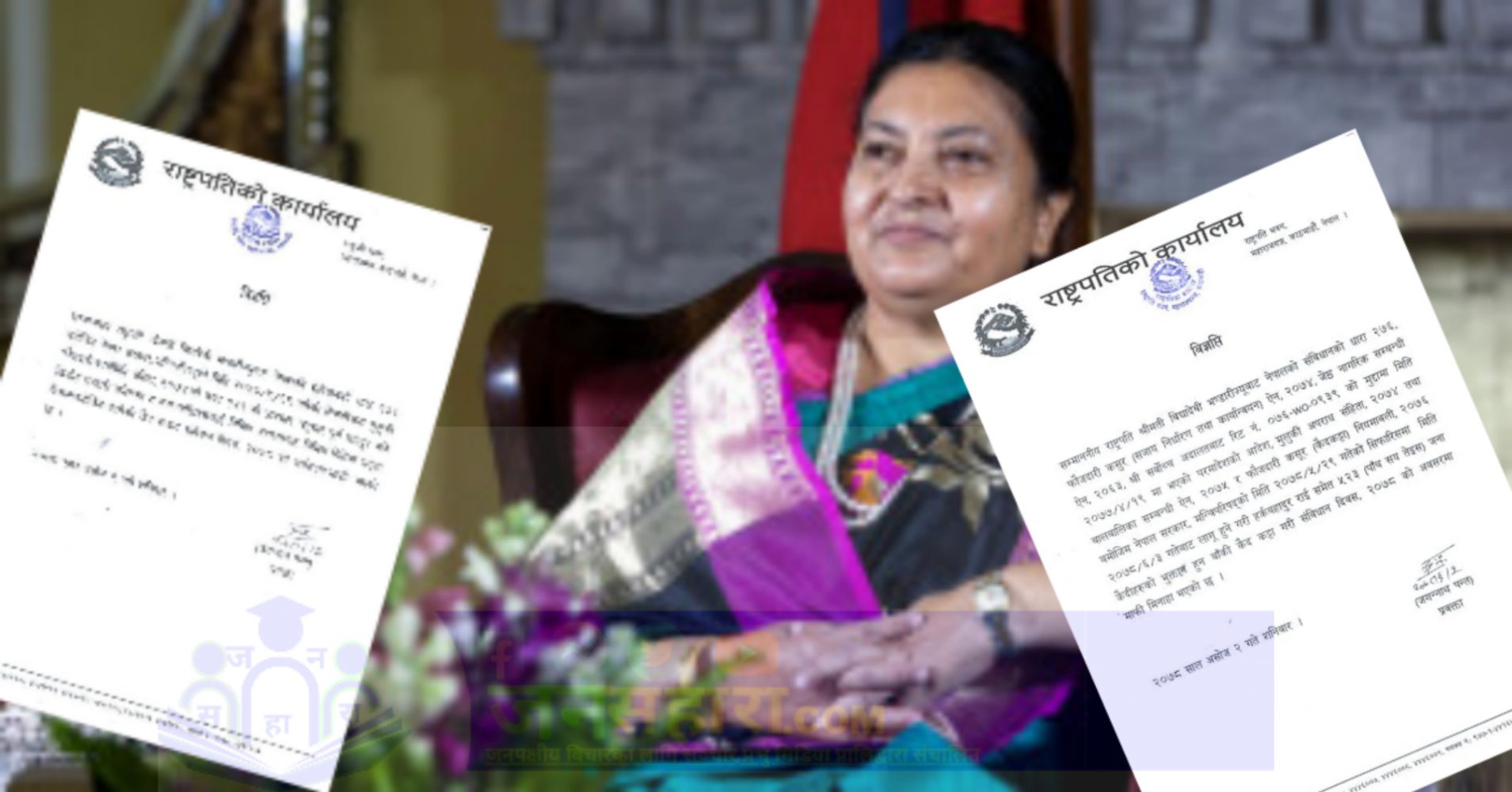 संविधान दिवसकाे अवसरमा राष्ट्रपति विद्यादेवी भण्डारीबाट नेपालको संविधानको धारा २७६ बमोजिम ५ सय ३१ जनालाई माफी दिइएको छ। भदाै २९ गतेको बसेकाे बैठकले सिफारिस गरेका ५ सय ३१ जनालाई माफी