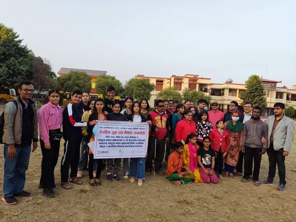 मंसिर १८ बुटवल – अपाङ्गता भएका व्यक्तिहरुको ३० औं अन्तर्राष्ट्रिय अपाङ्गता दिवस “हाम्रो प्राथमिकताको आधार ,अपाङ्गता भएका व्यक्तिहरुको अधिकार ” भन्ने नारा सहित नेत्रहिन युवा संघ रुपन्देहीले अपाङ्गता दिवसका सन्दर्भमा २ दिने कार्यक्रम सम्पन्न गरेको छ ।