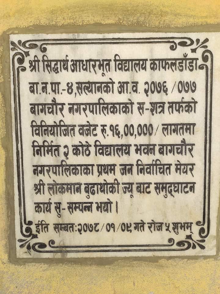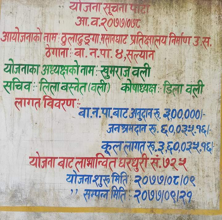 i) दुइकोठे भवन निर्माण १६ लाख, स्थानीय सरकार ।