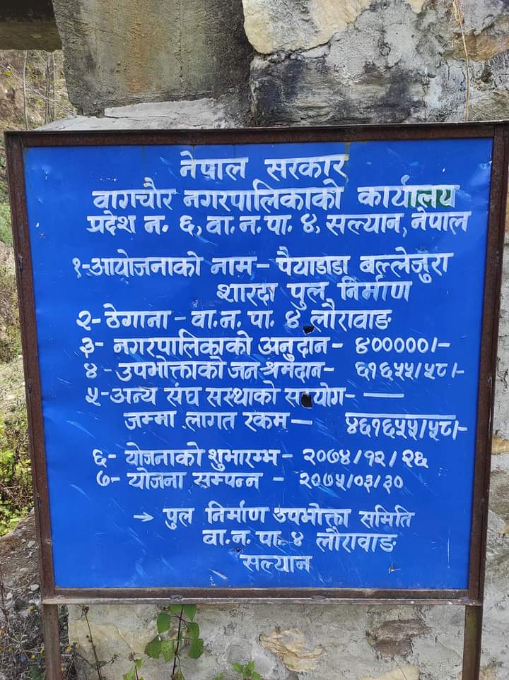 सल्याब पुल निर्माण तर्फ जम्मा रु.१५ लाख ।